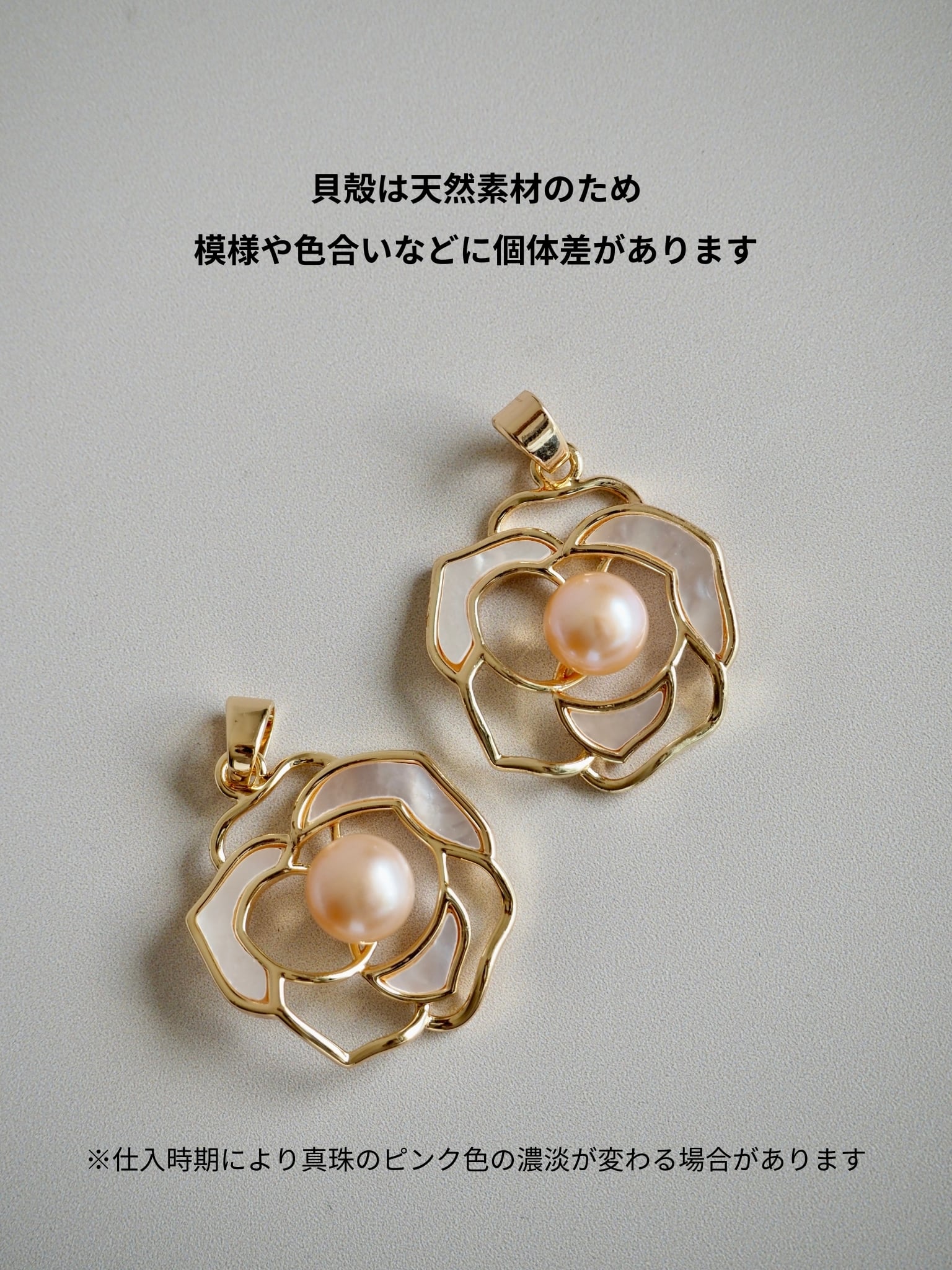 素材:イケチョウガイ、淡水パール、真鍮(18K金メッキ)