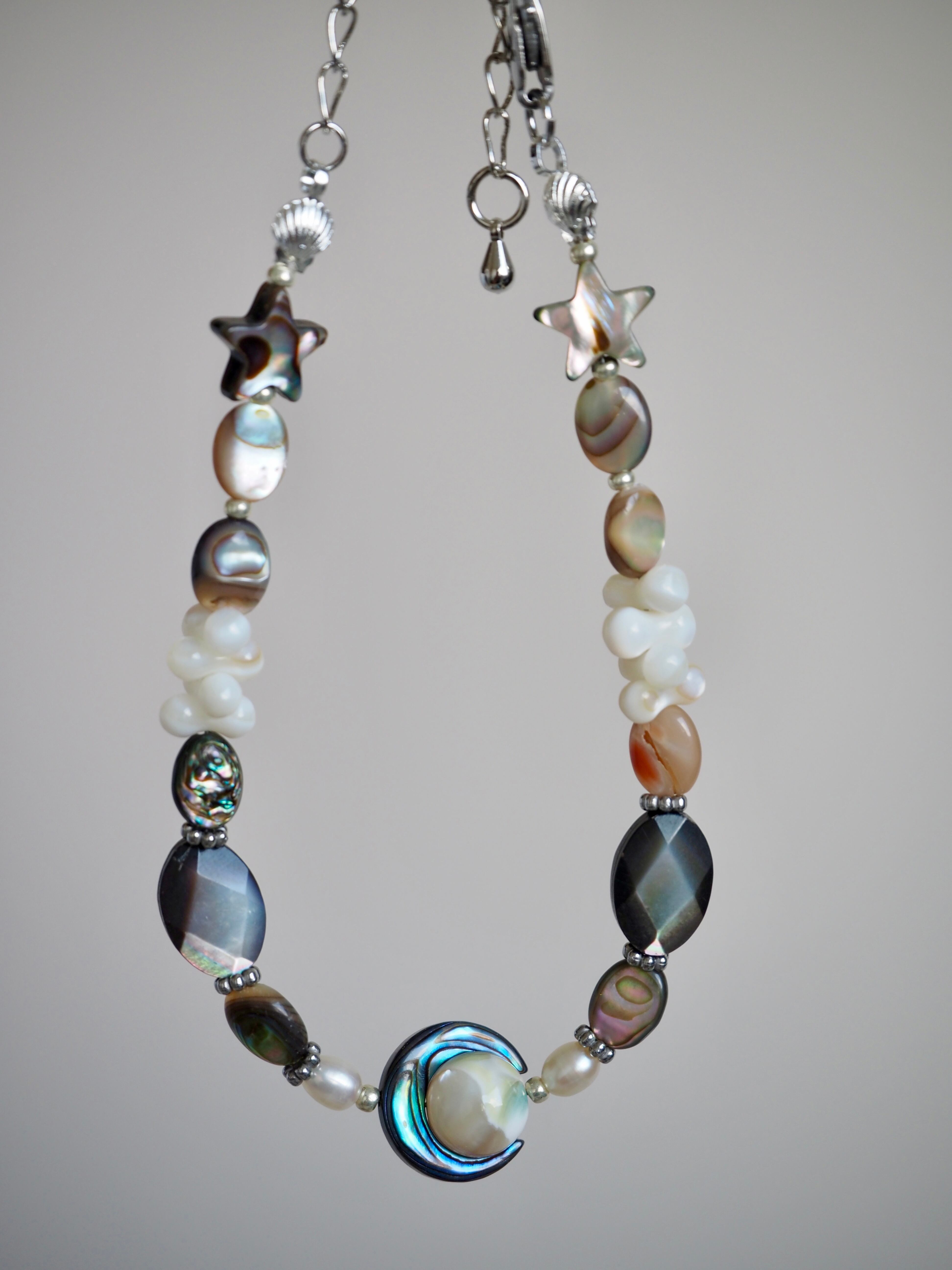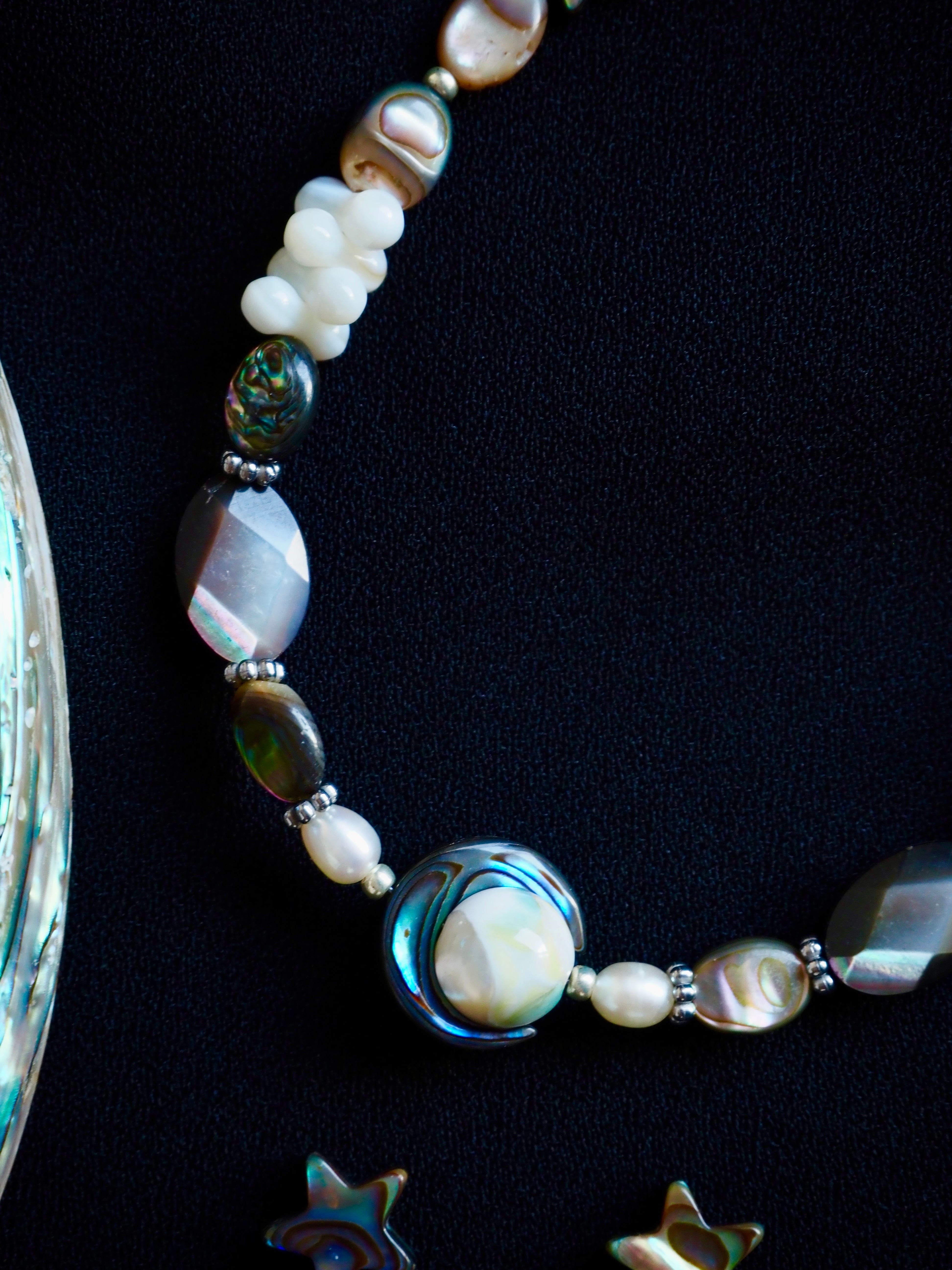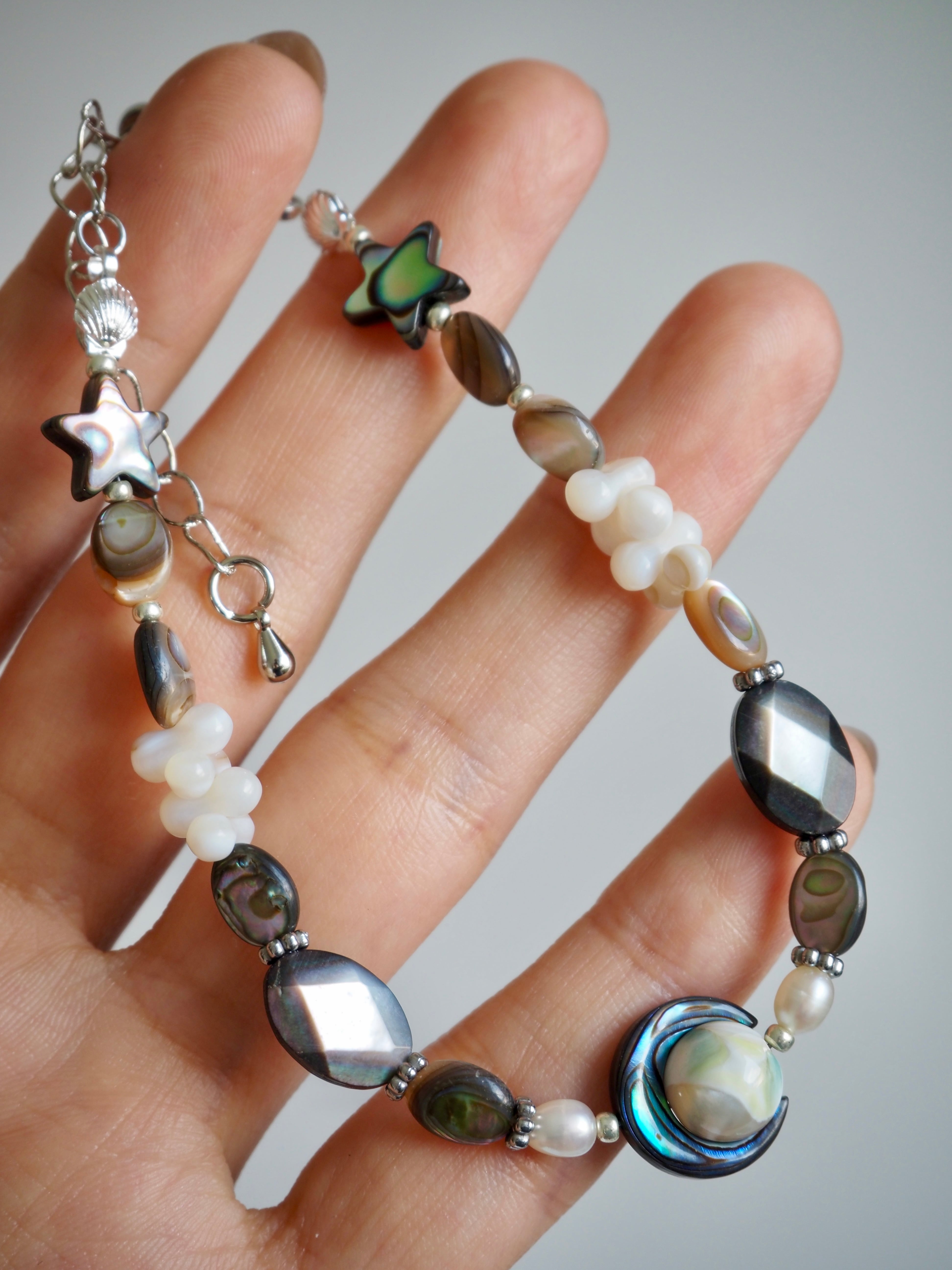 貝殻の宇宙ブレスレット |ヤコウガイ・クロチョウガイ・パウアアバロン・淡水真珠貝