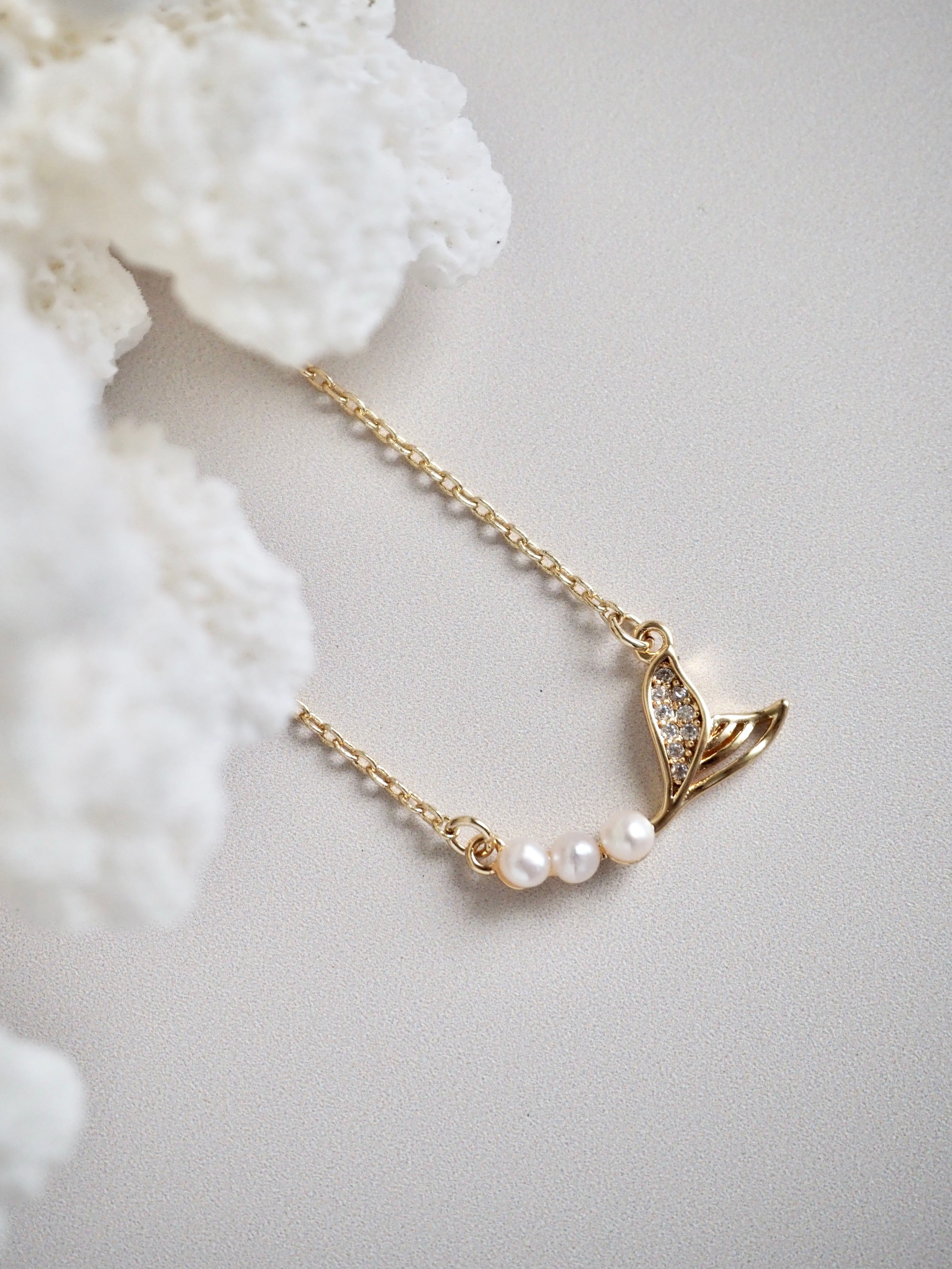 小さな真珠と人魚の鰭ネックレス(淡水パール)