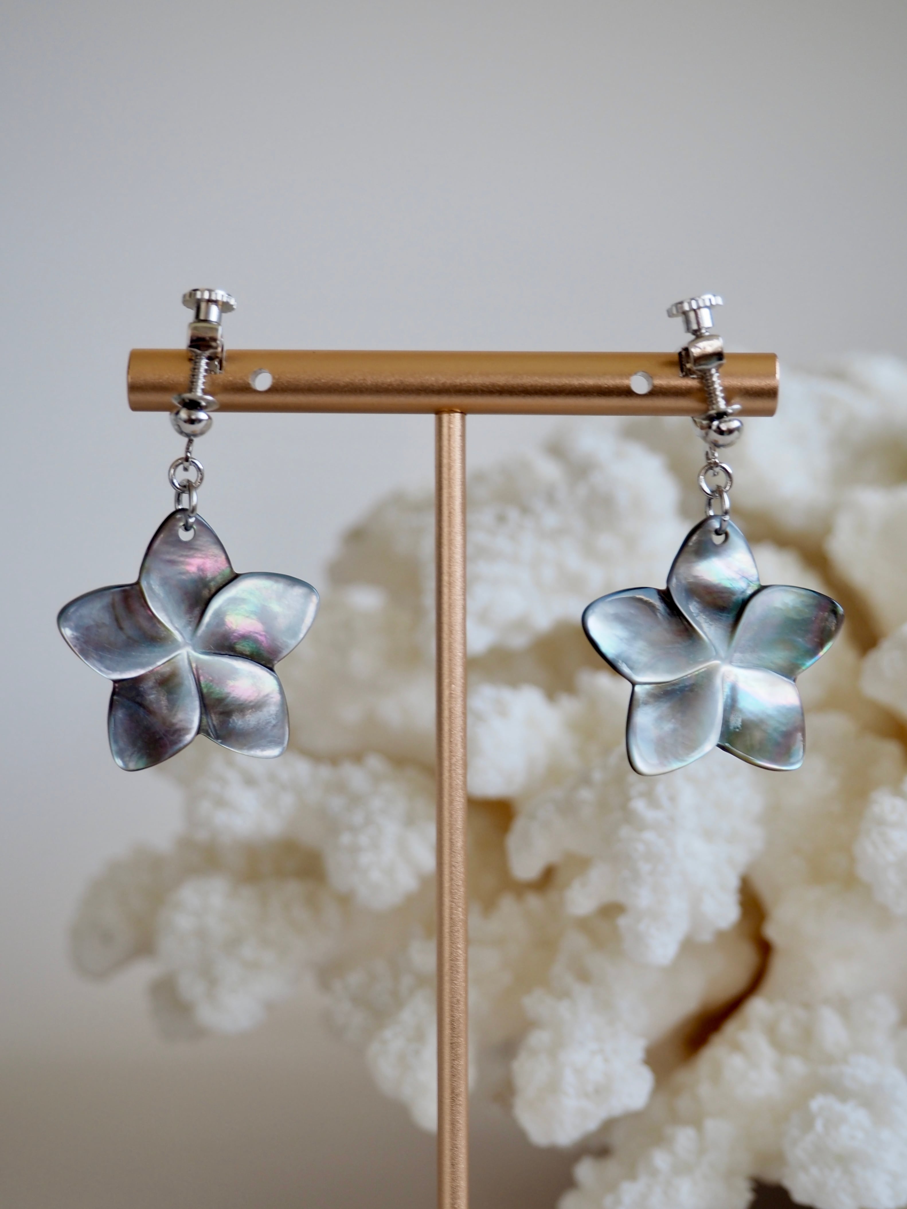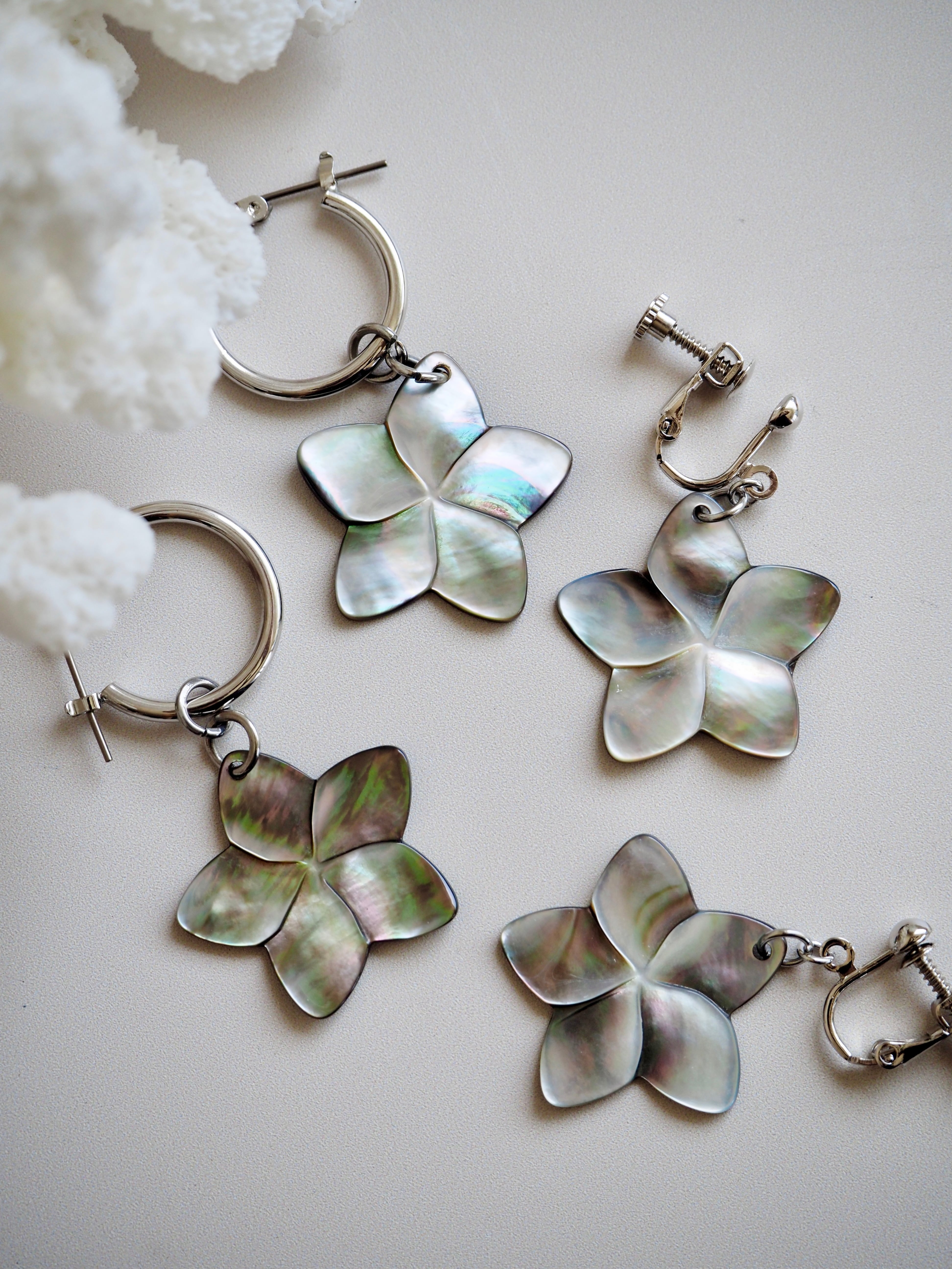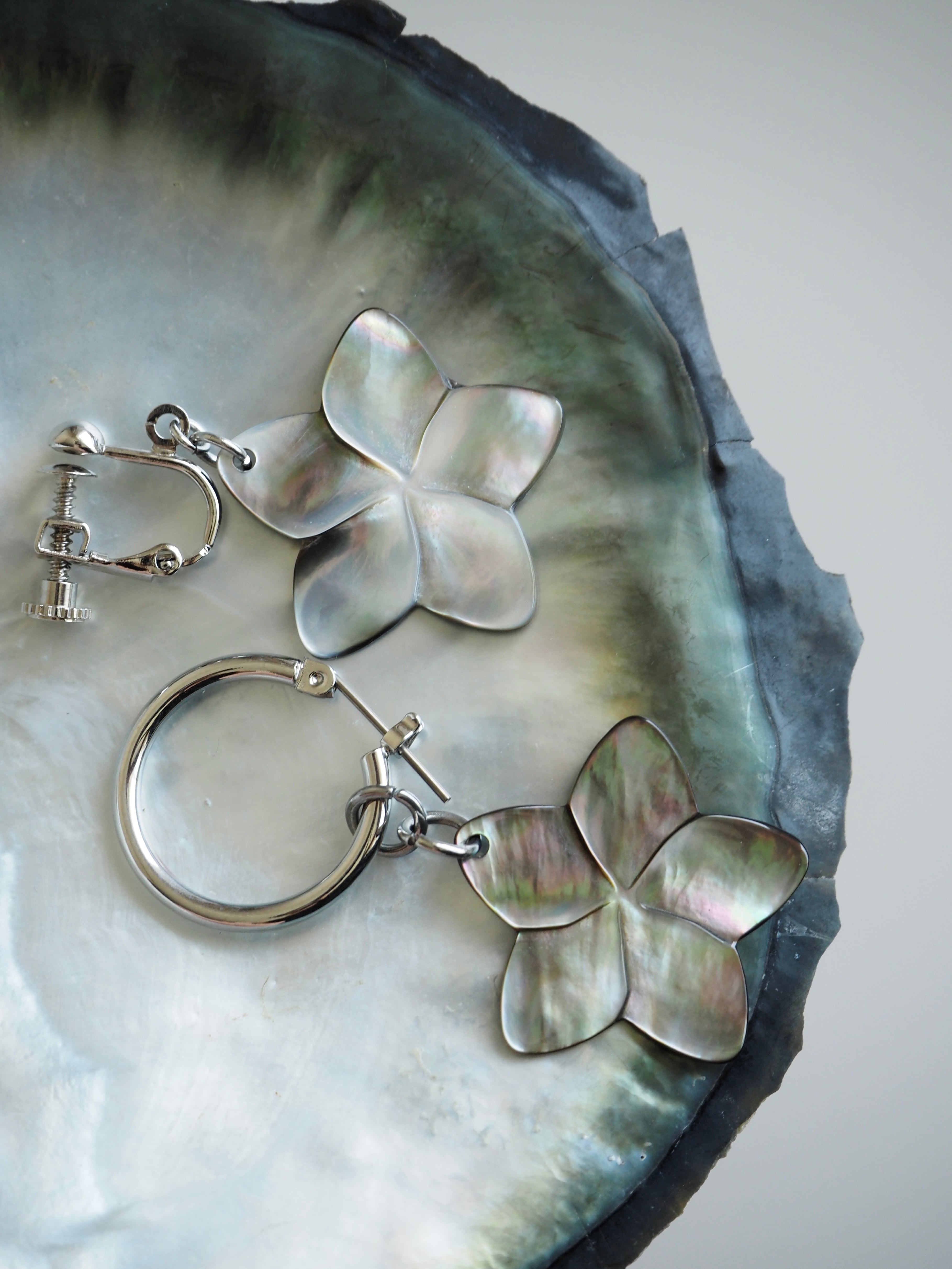 クロチョウガイ フラワーの耳飾り 両耳セット