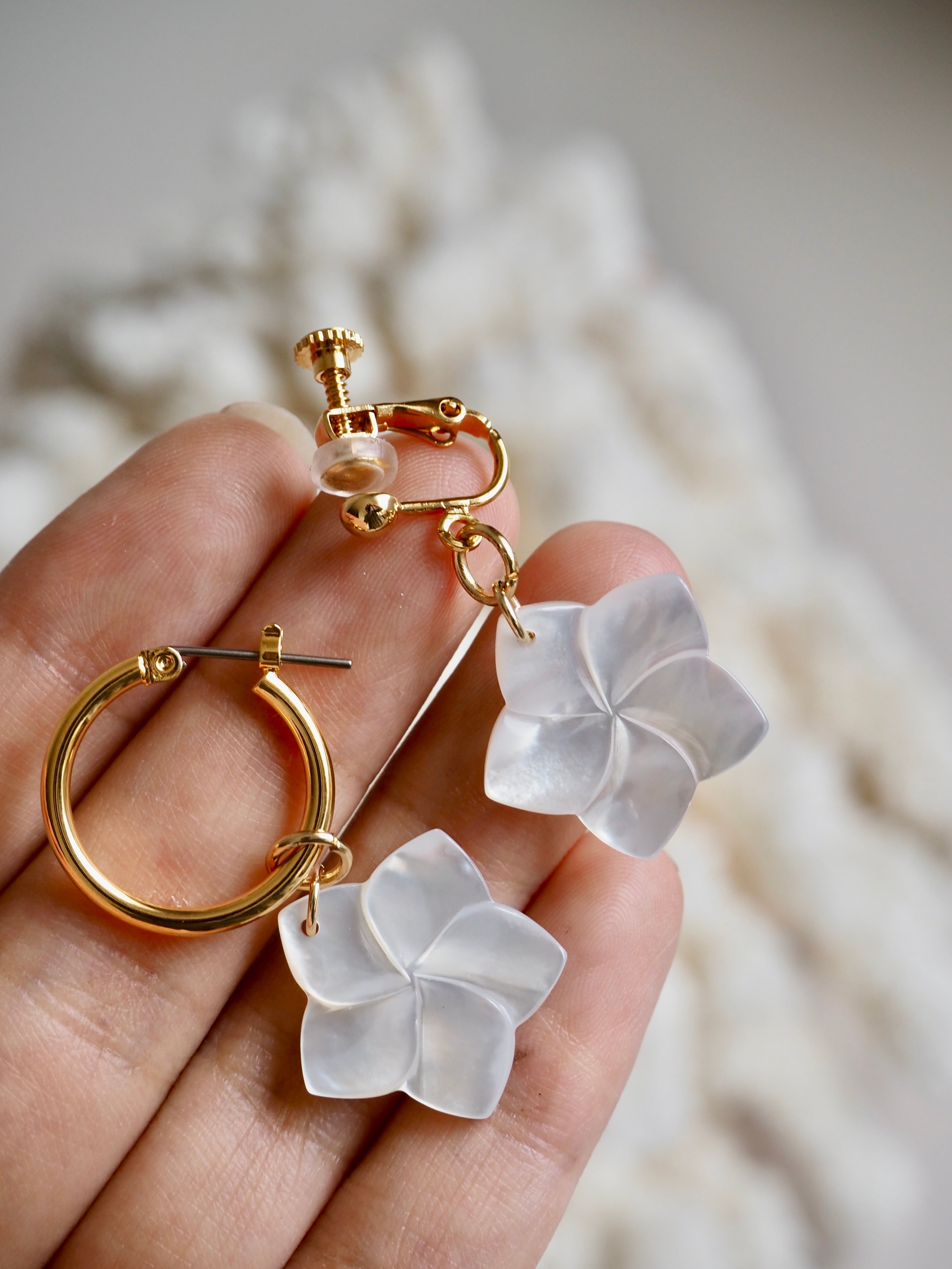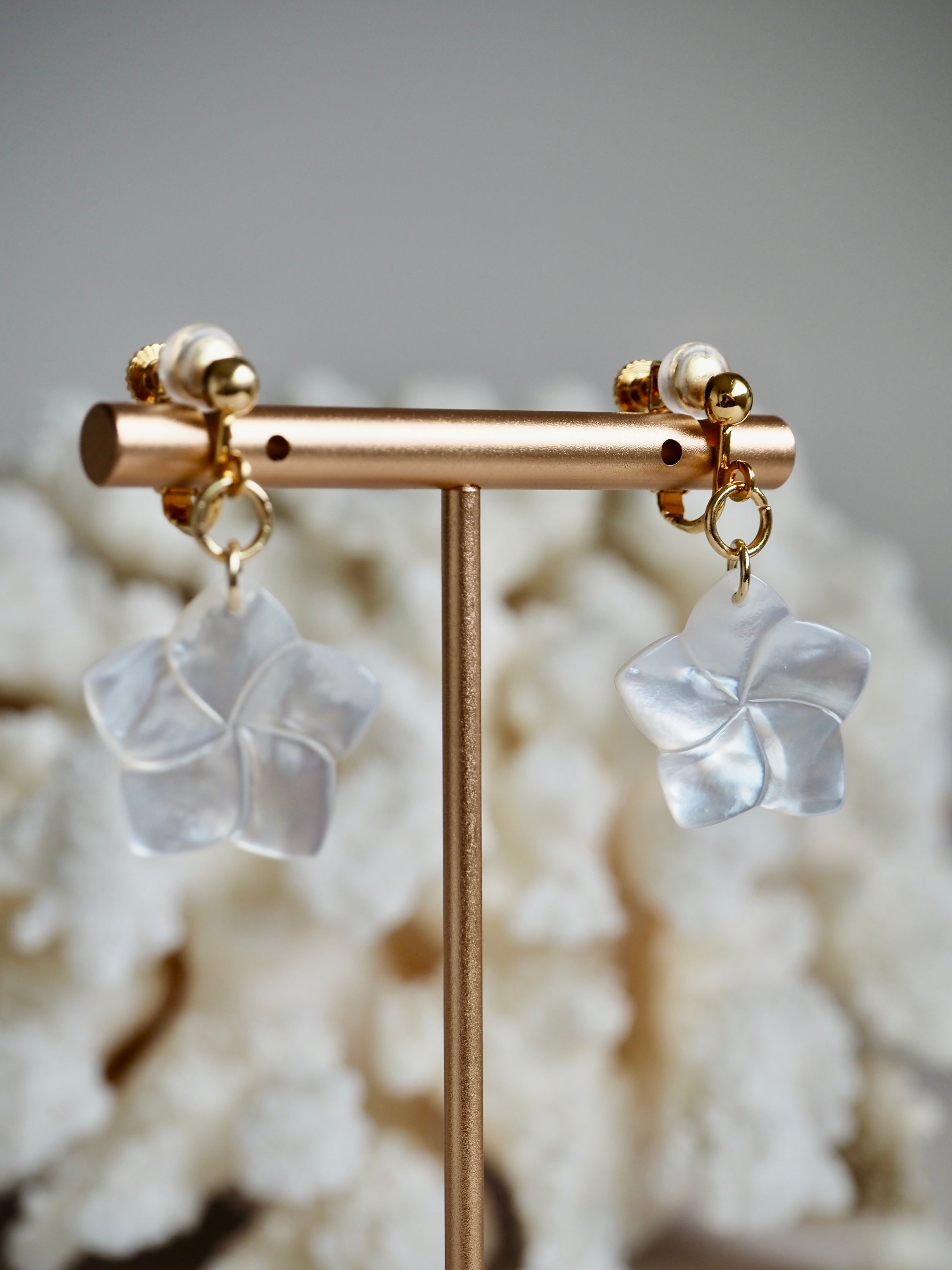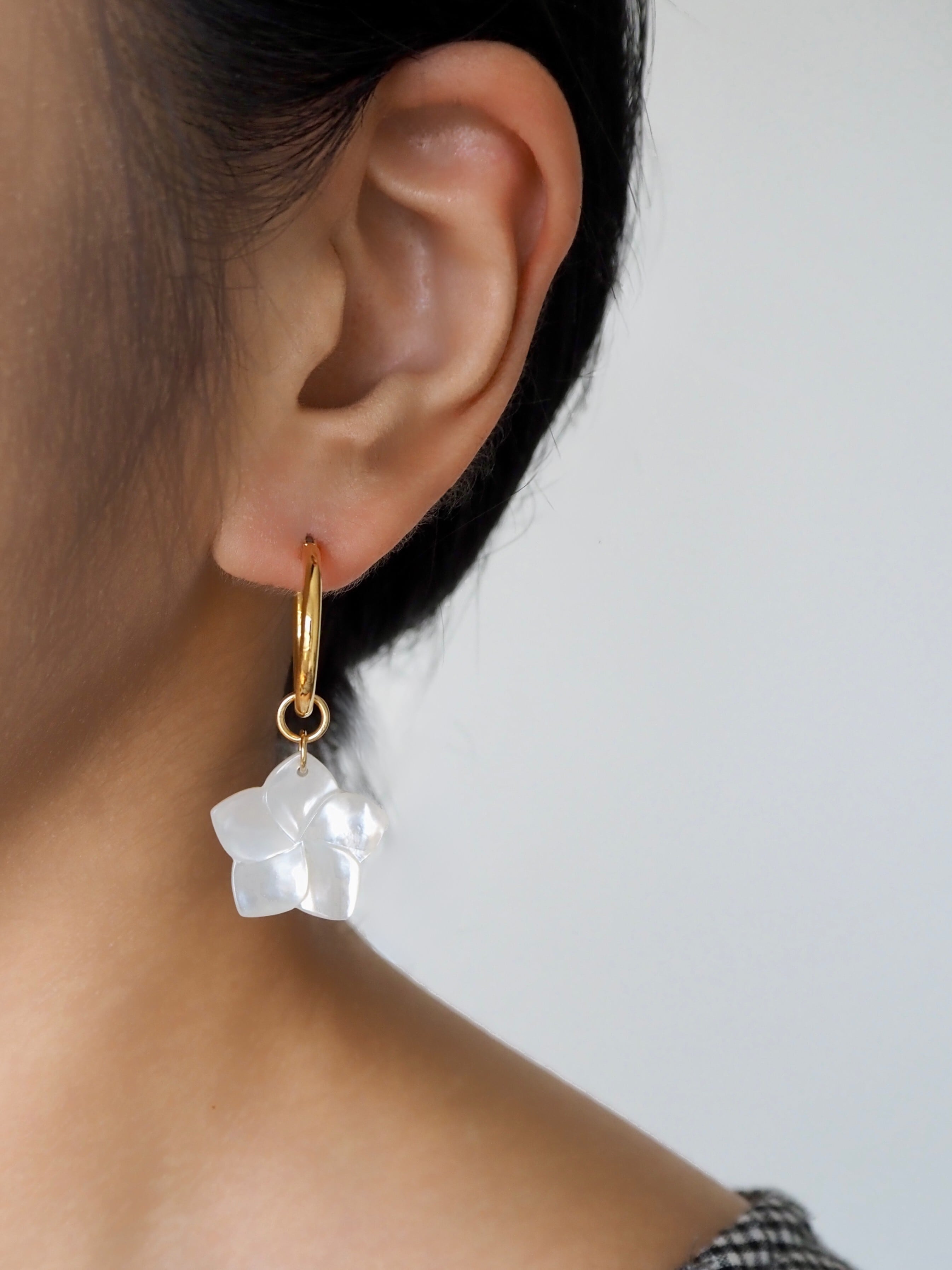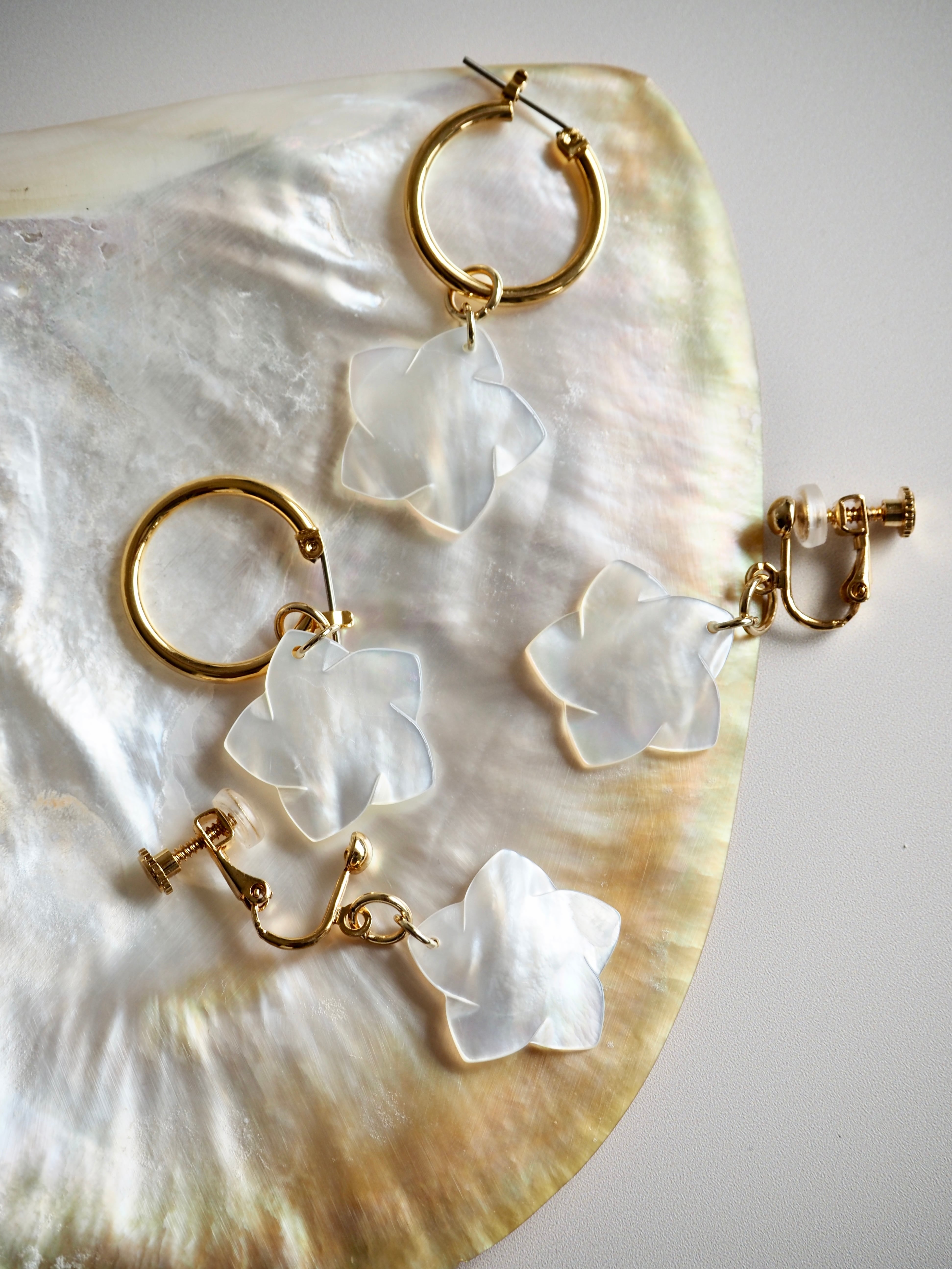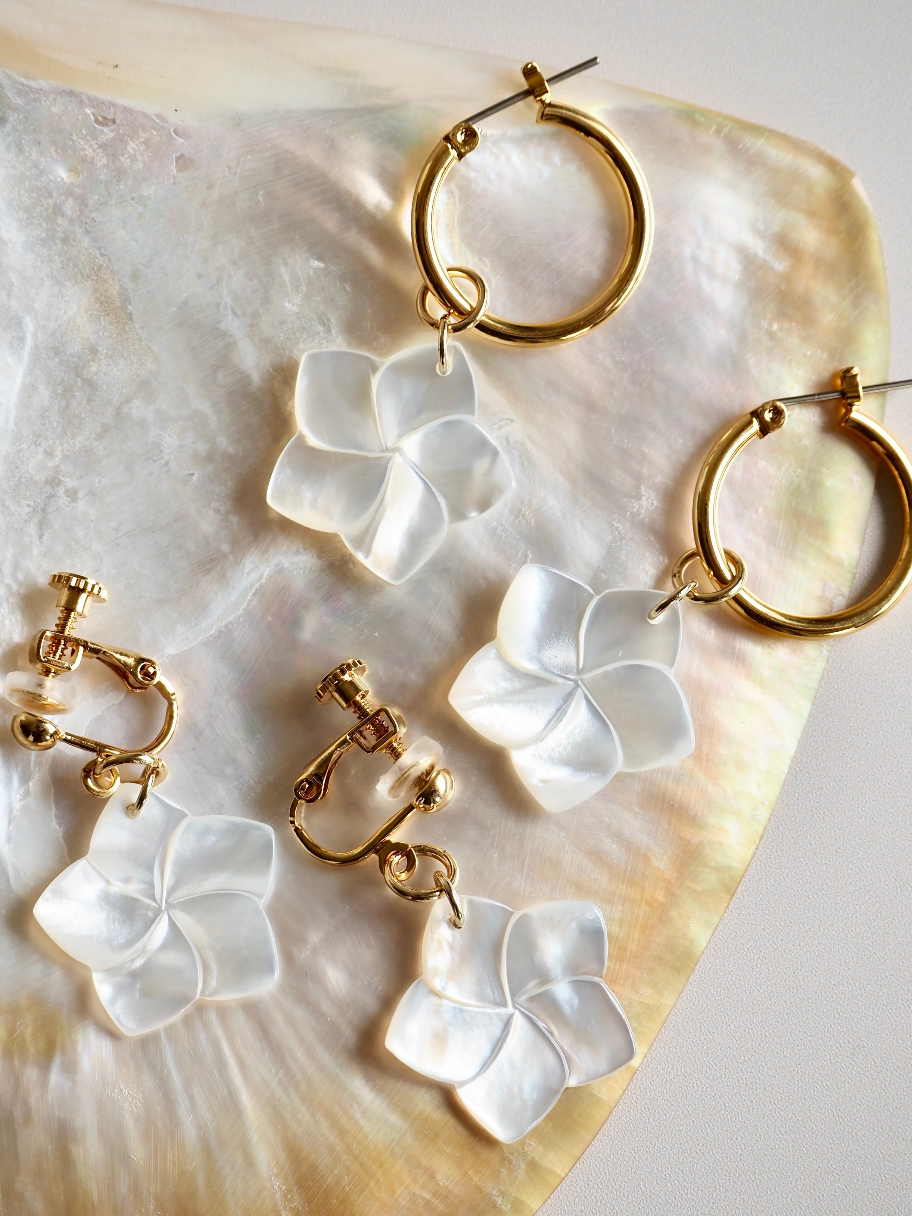 シロチョウガイ フラワーの耳飾り 両耳セット