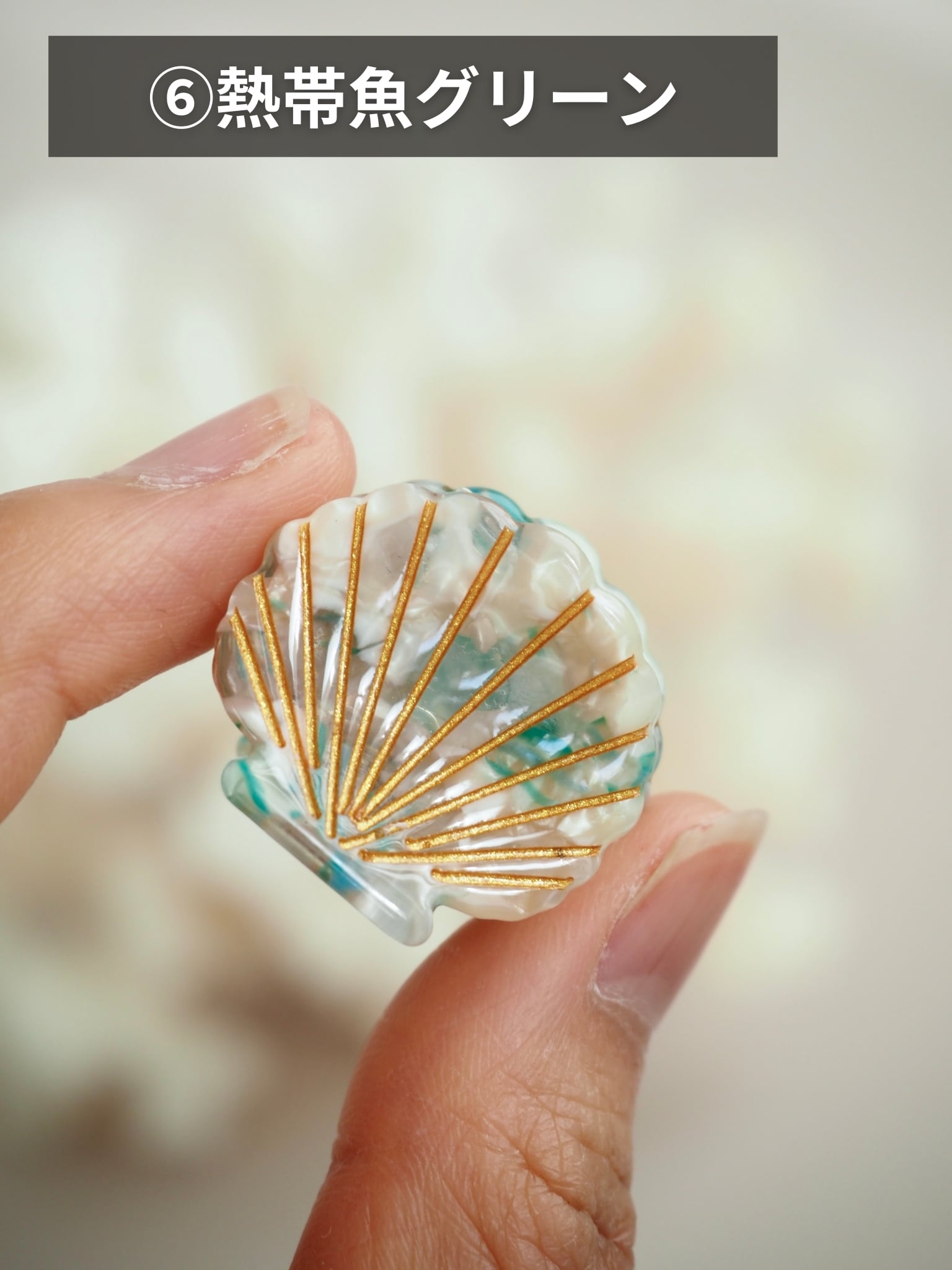 真珠層のような艶やかで透明感のある質感と色合いです。