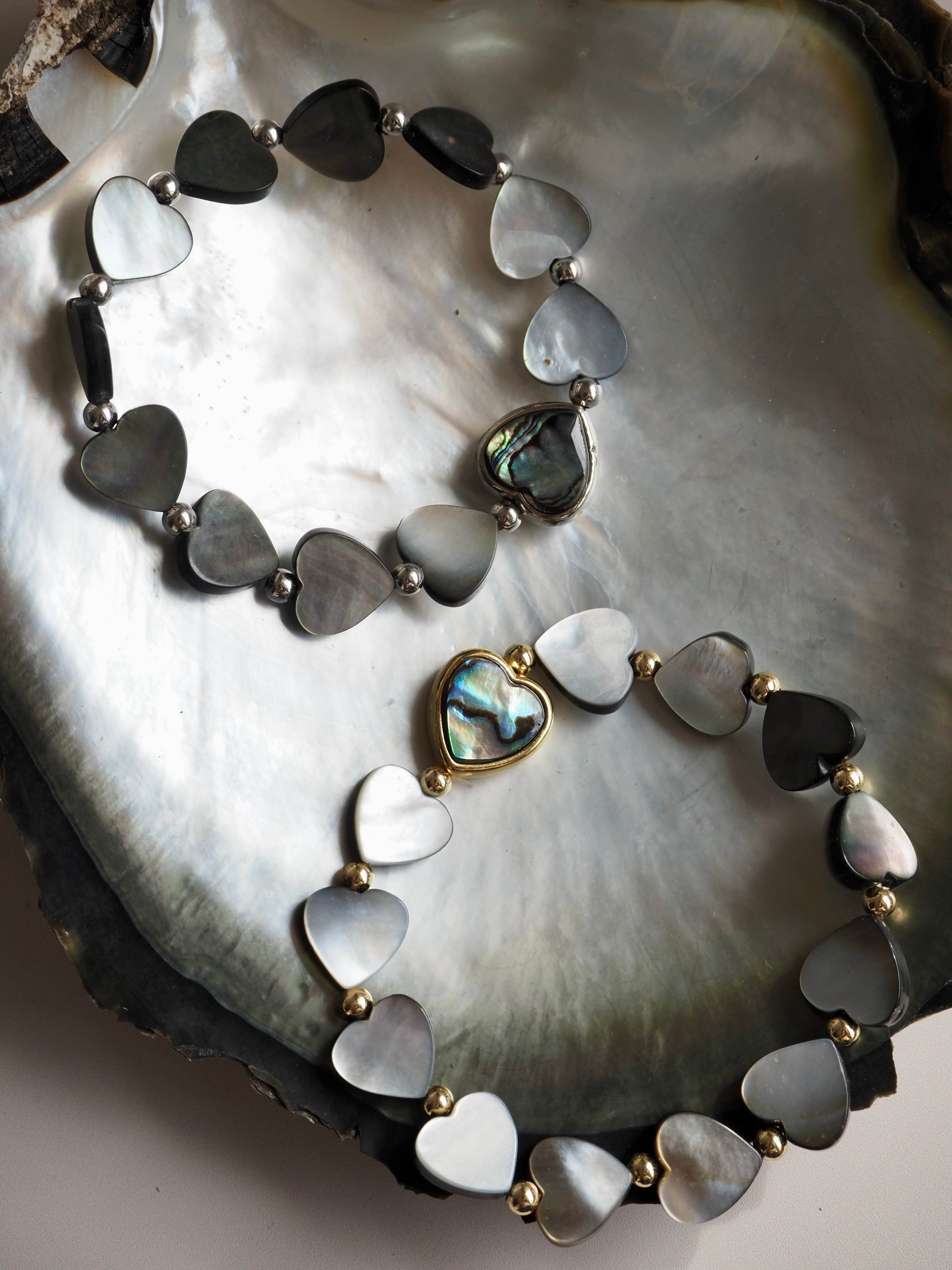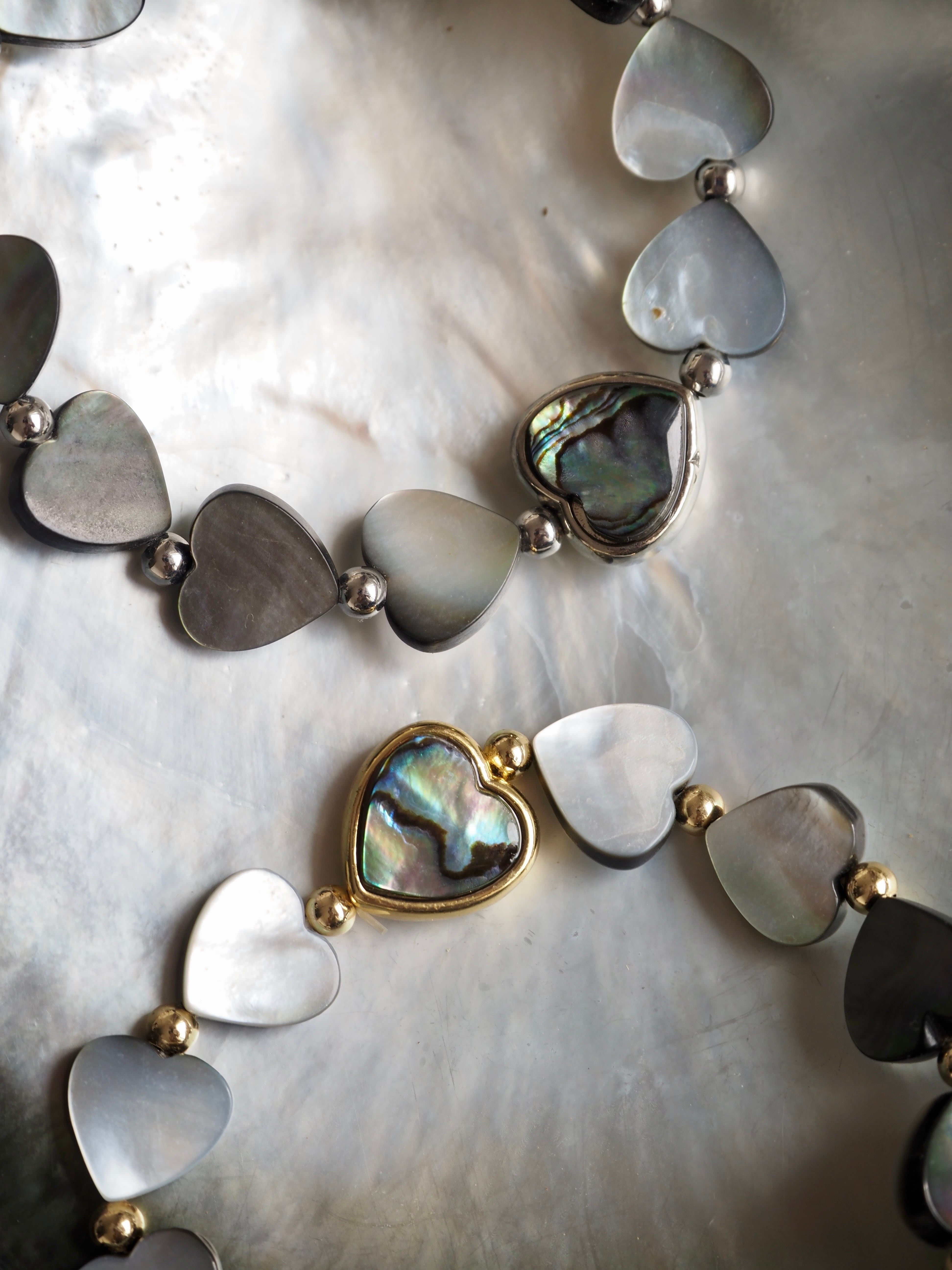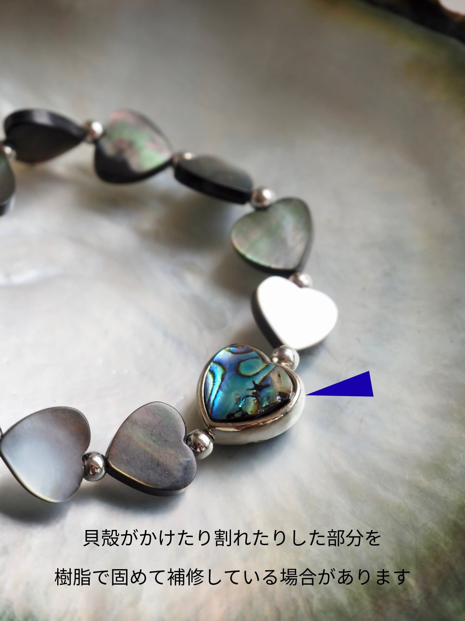 クロチョウガイとパウアアバロンのブレスレット(ハート)