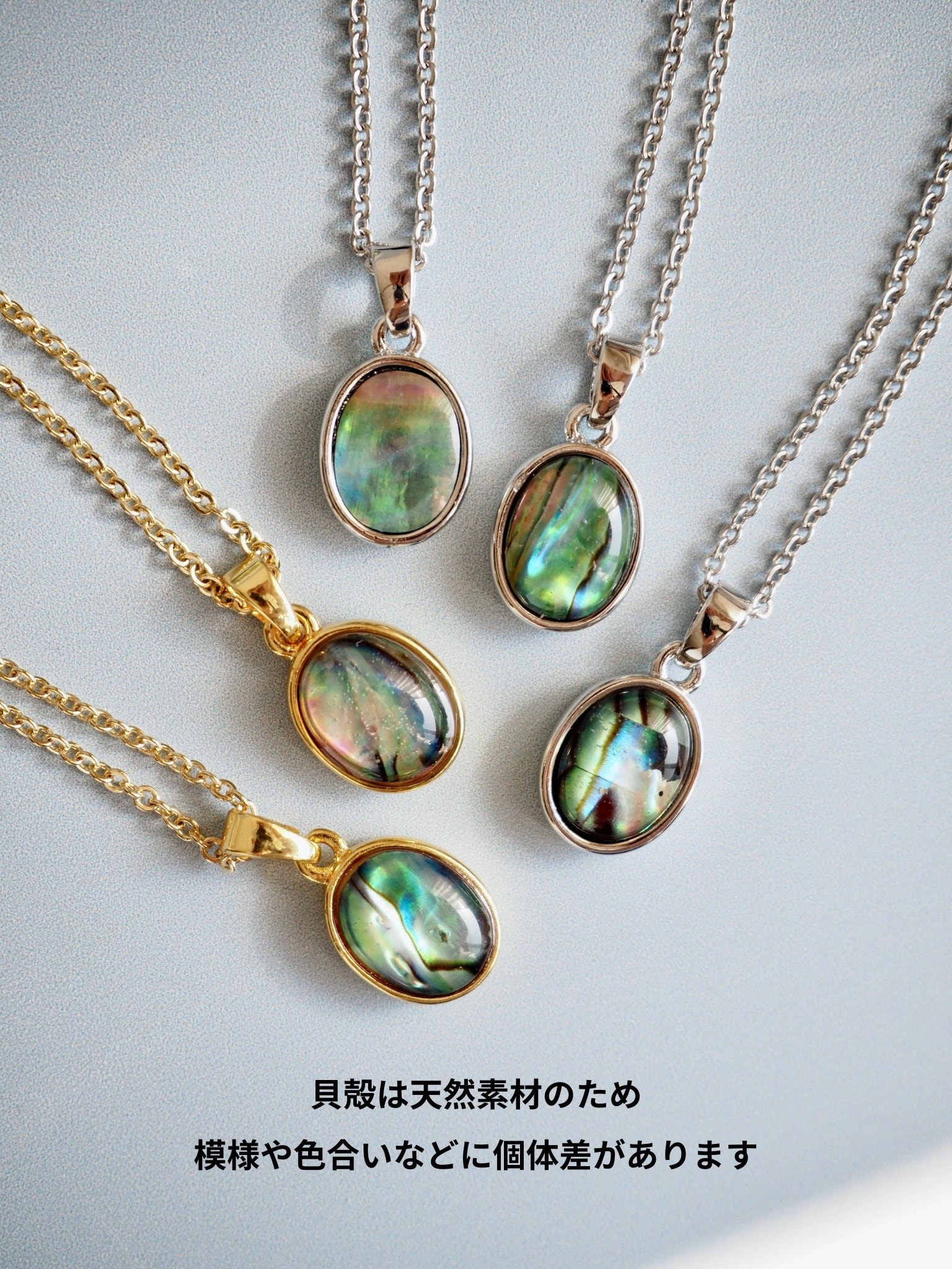 “海のオパール”と呼ばれるパウアアバロン(ヘリトリアワビ)を使用したネックレス。