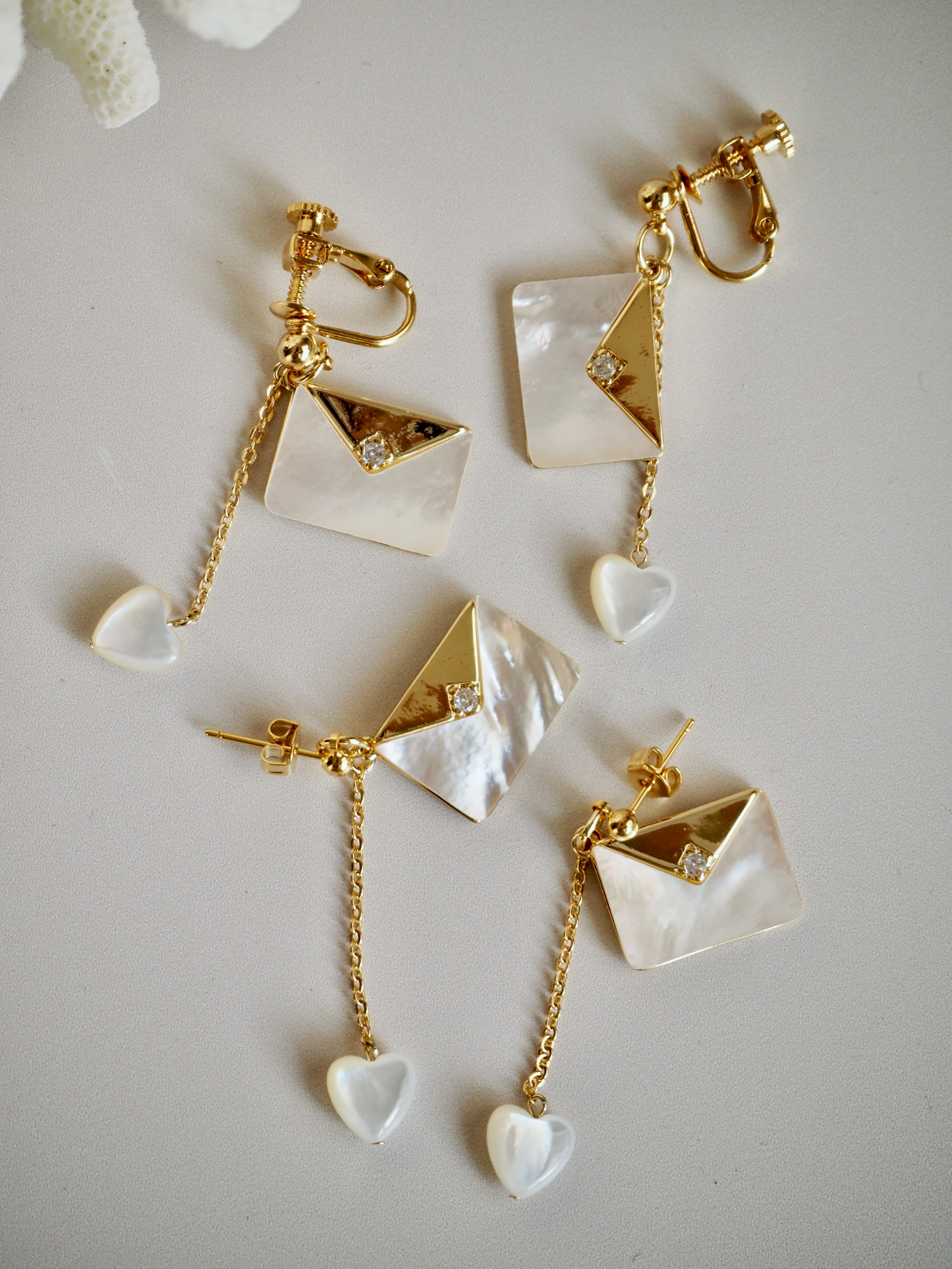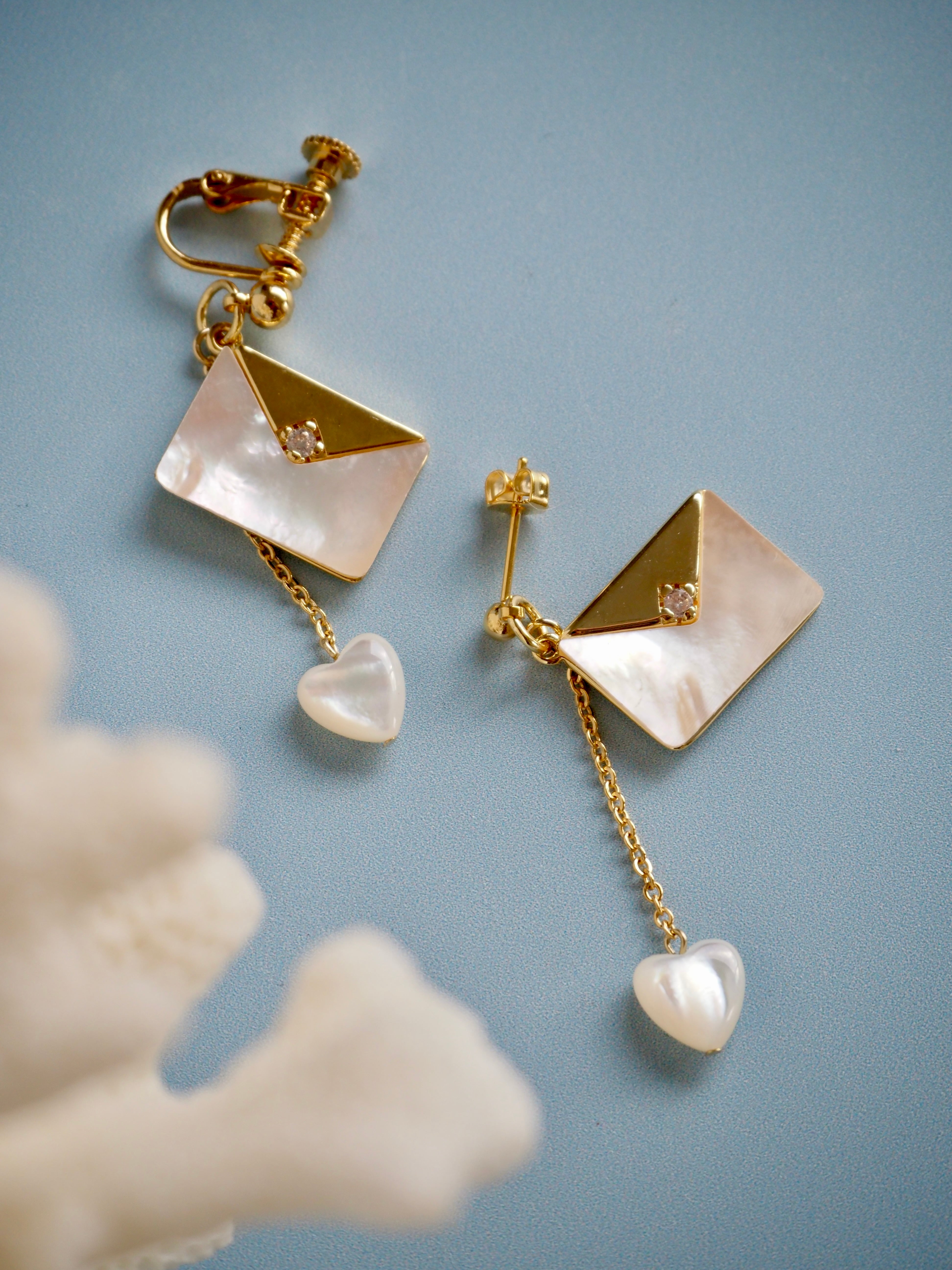 ラブレター 真珠貝の耳飾り 両耳セット(淡水真珠貝・シロチョウガイ)