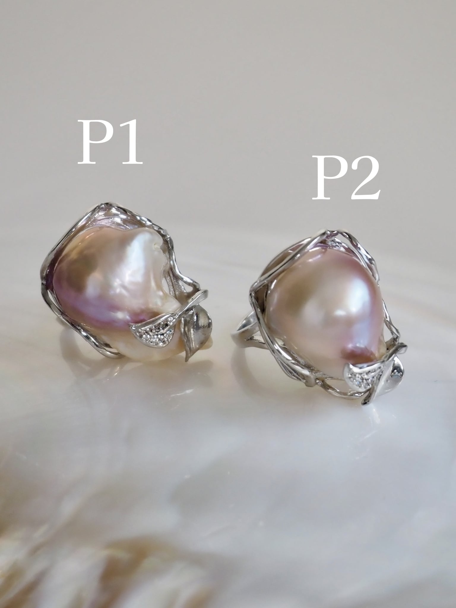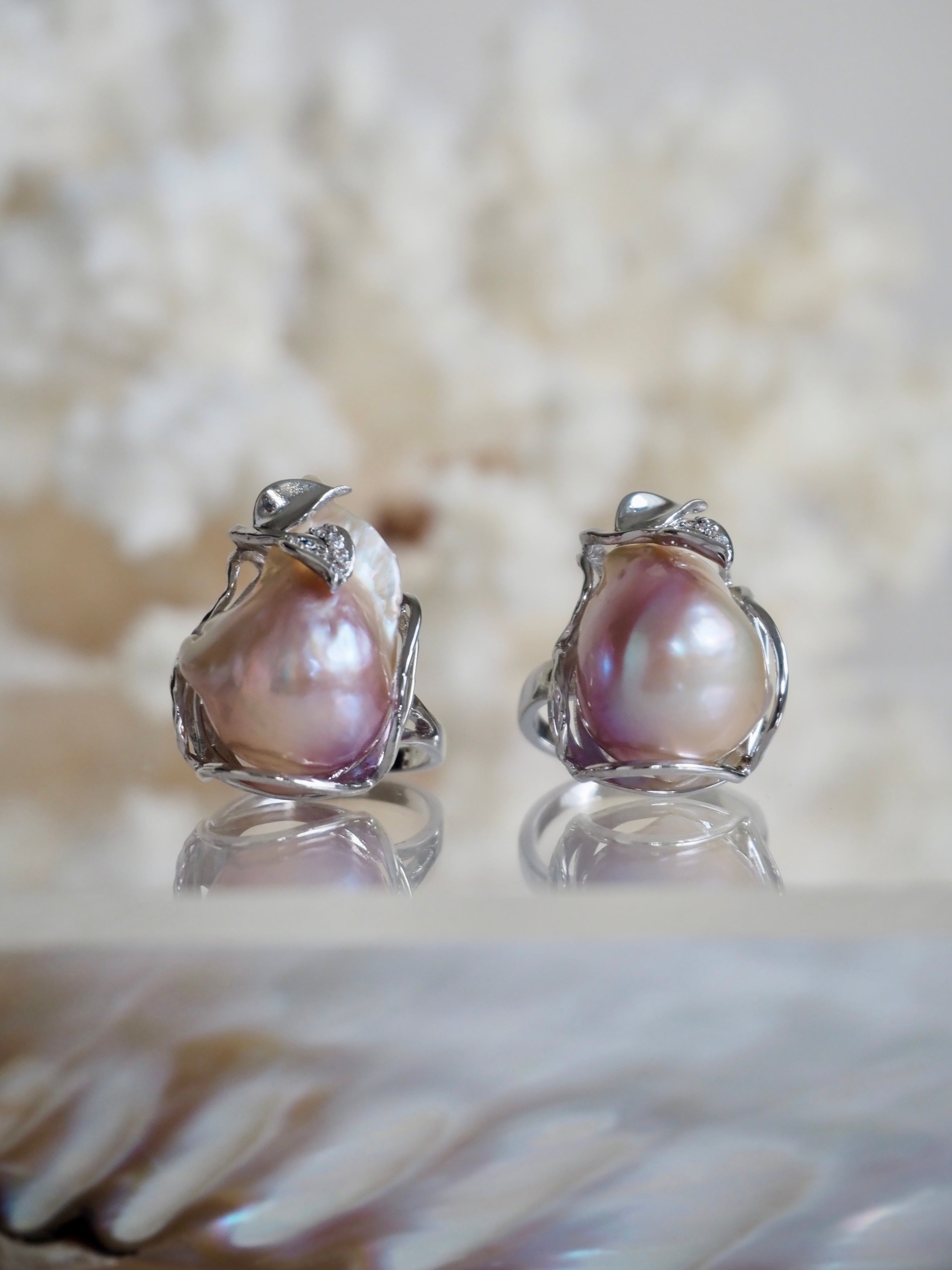 個性豊かな形状のバロックパールを牡蠣のように仕立てたリングです。