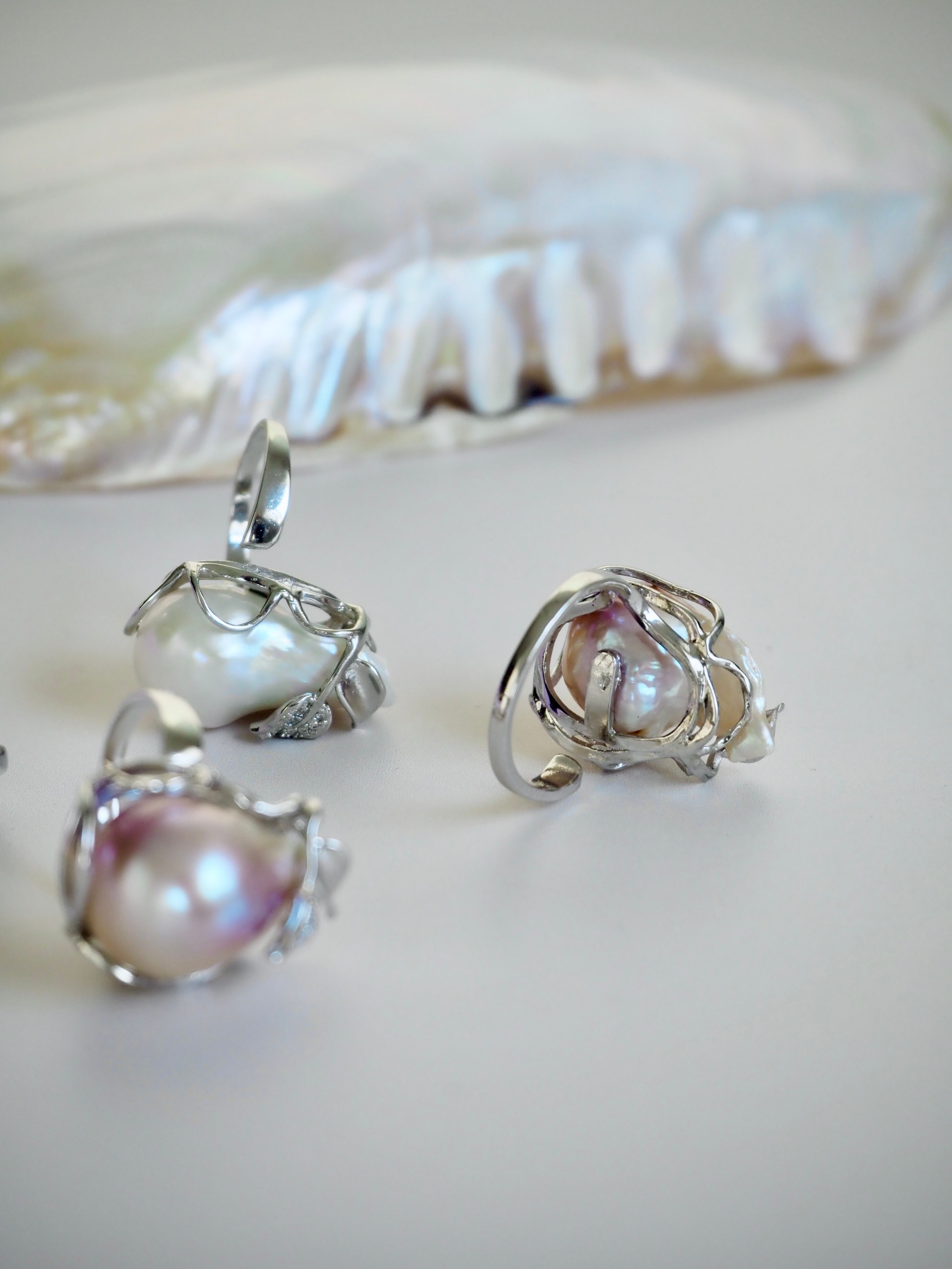 近年人気のバロックパール。同じものはこの世にふたつとなく、唯一無二の愛らしさが注目を集めています。バロックとはポルトガル語の「バロック(いびつ)」が語源とされています。