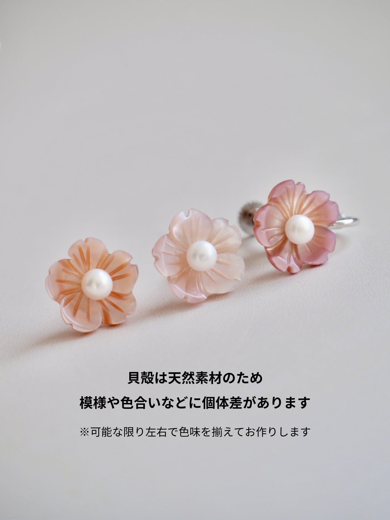 貝殻のサクラ “満貝”耳飾り(淡水真珠貝)両耳セット