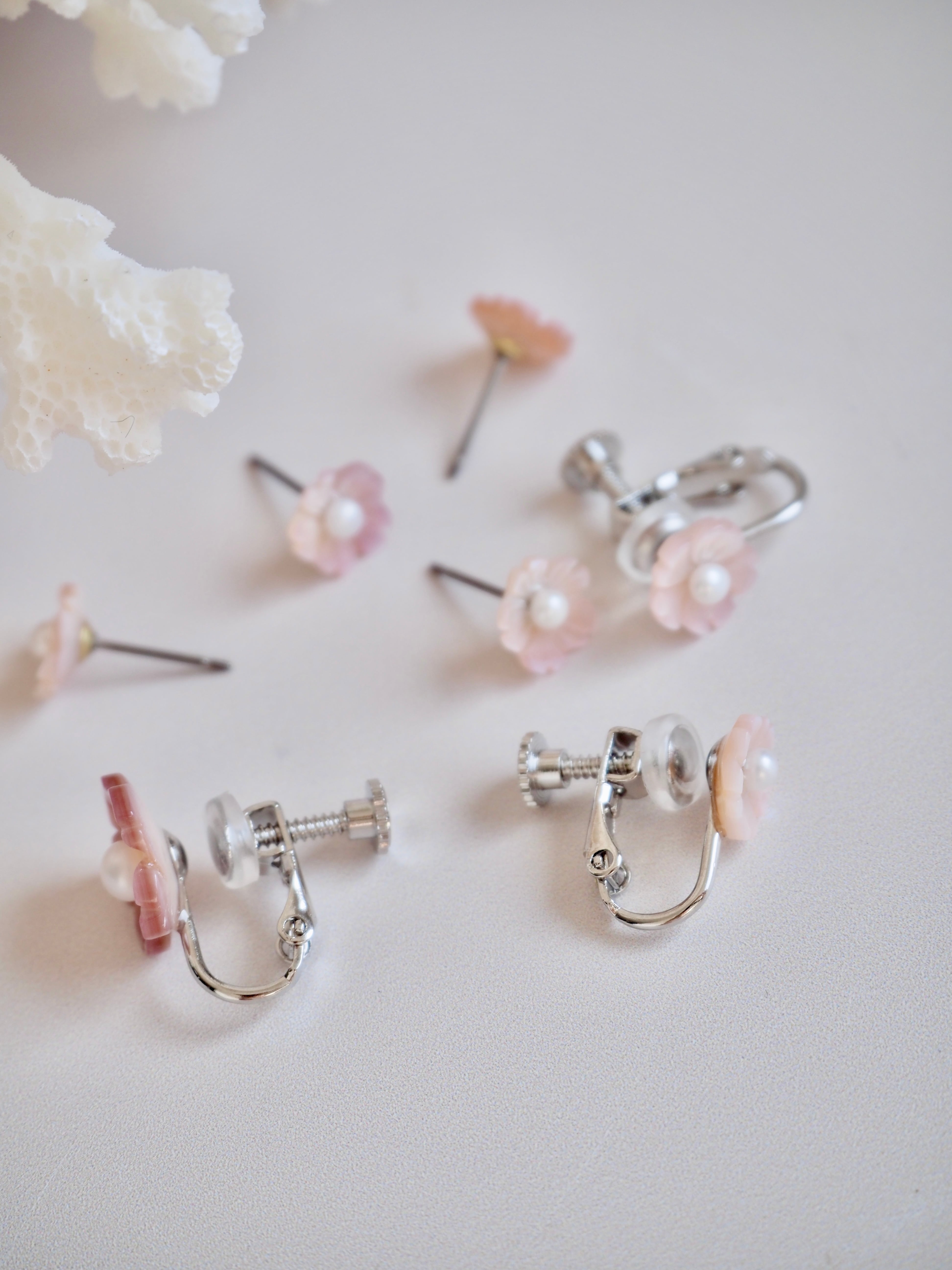 貝殻のサクラ 耳飾り(淡水真珠貝)両耳セット