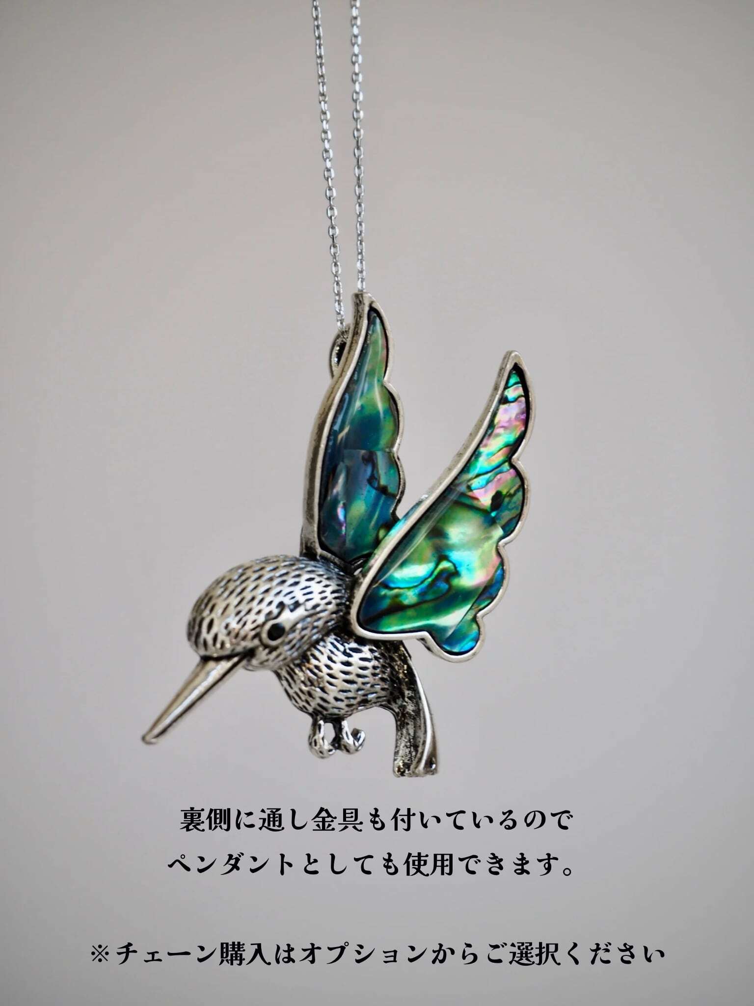 飛ぶ宝石 カワセミ パウアアバロンのブローチ