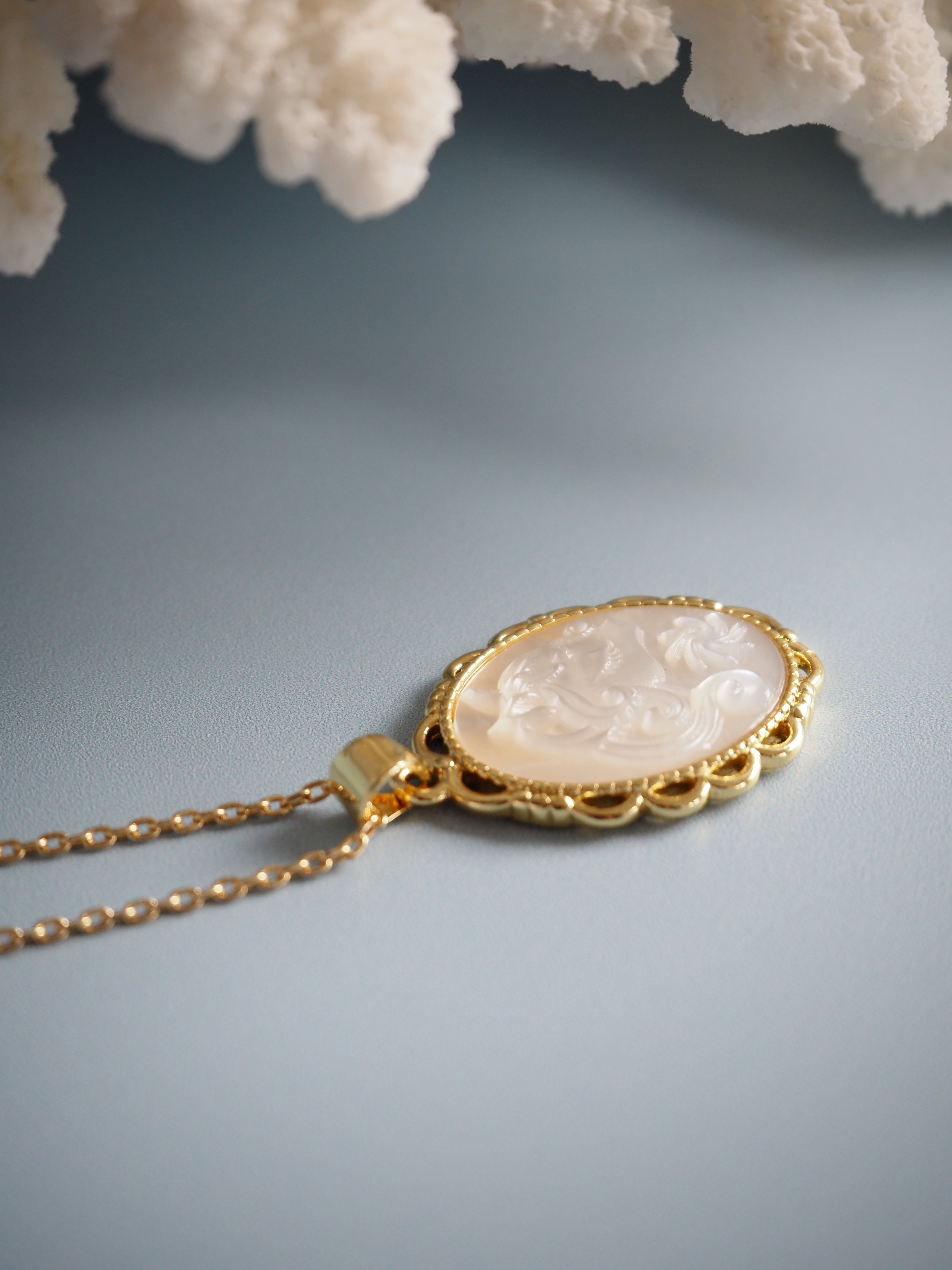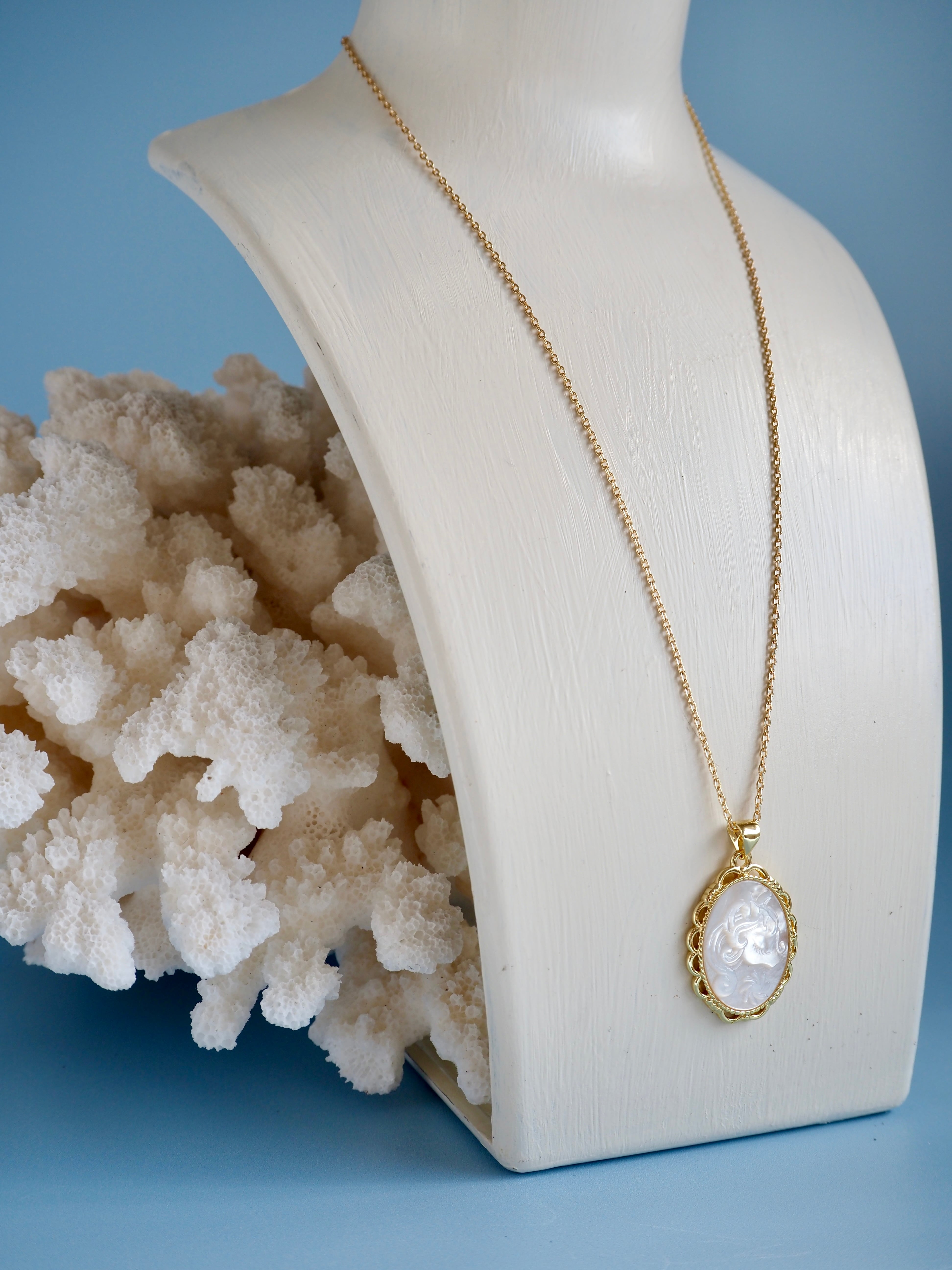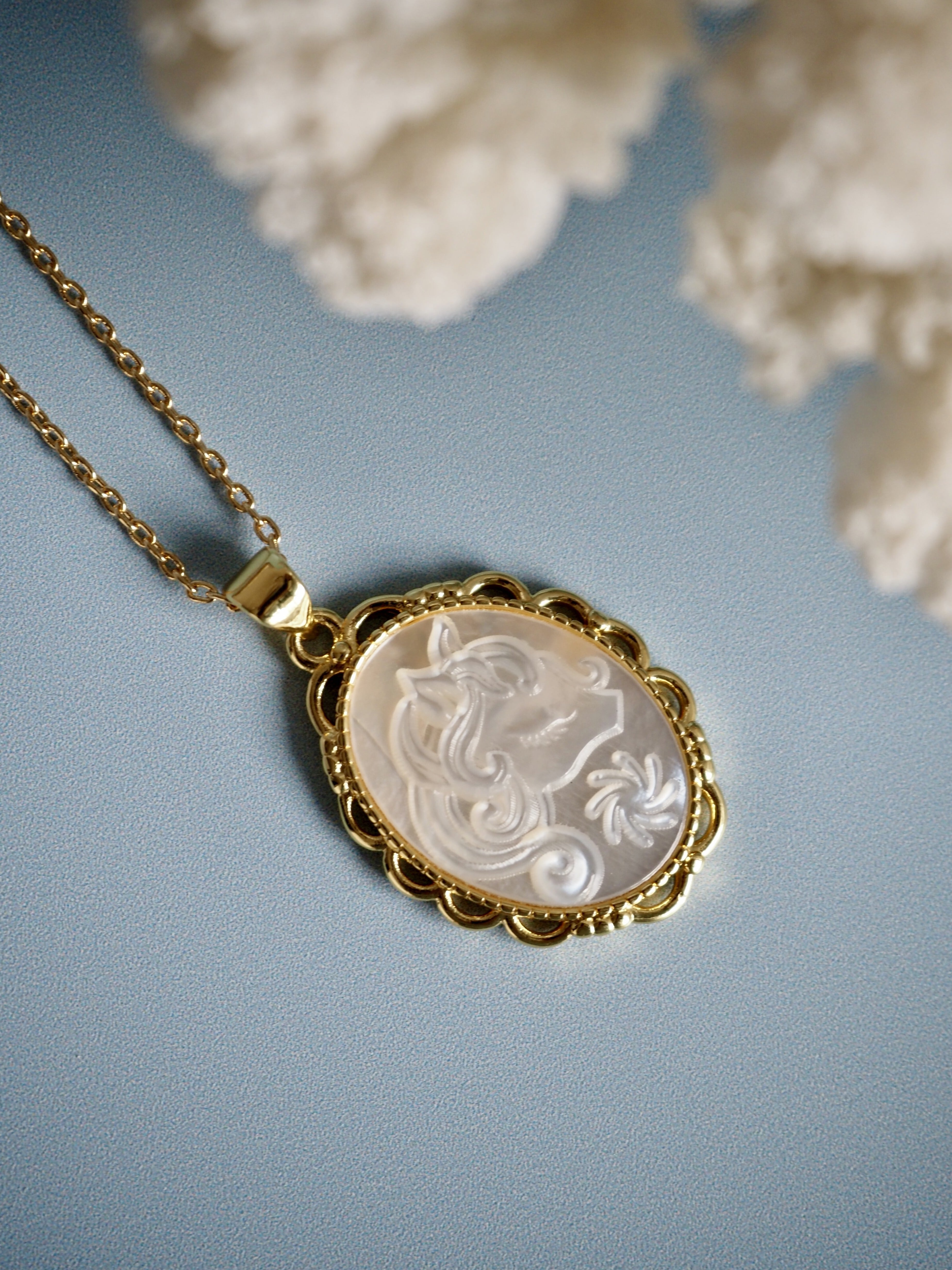 ユニコーン シェルカメオのネックレス(シロチョウガイ)