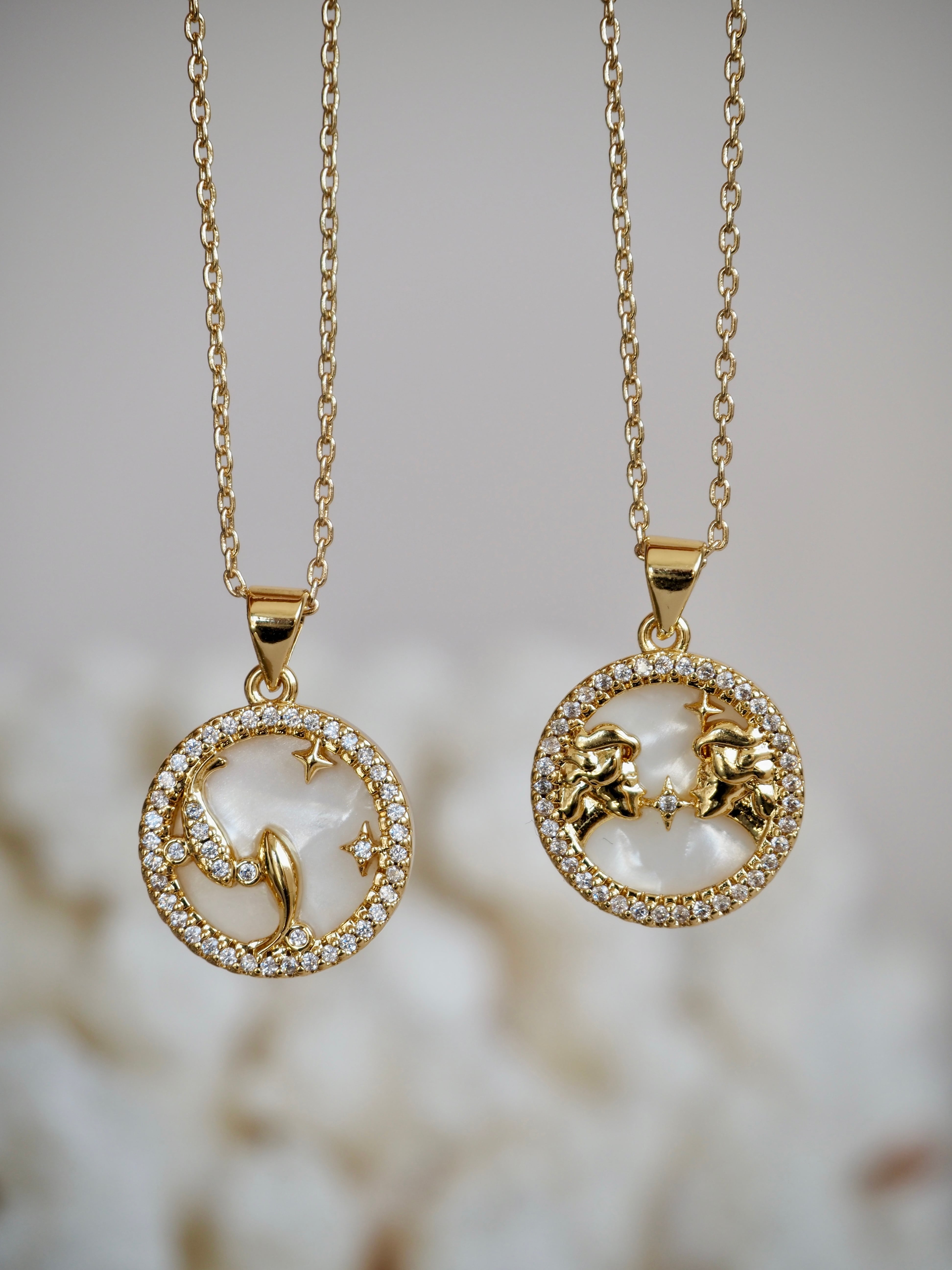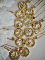 澄んだ星の輝きのよう。透明感のある真珠層を持つ貝殻を加工したネックレス。